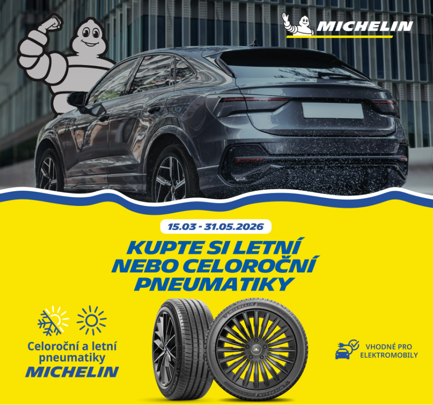 Spojte příjemné s užitečným! Nakupte do 31. května 2026 na Pneubossu 1 sadu (4 kusy) nových letních pneumatik Michelin nebo celoročních pneumatik Michelin. Jako odměnu za nákup získáte od Michelinu dárkový poukaz🎁v hodnotě 1000 až 1750 Kč na nákupy do sítě prodejen Alza nebo Decathlon. Prodejnu, ve které budete chtít uplatnit poukaz, si můžete vybrat sami. Postačí, když svůj nákup zaregistrujete na promo.michelin.cz.